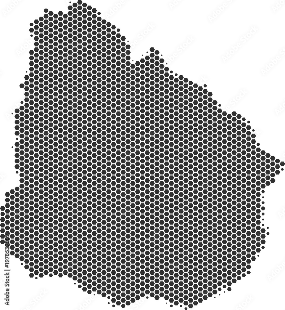 Uruguay map hexagonal half tone pattern isolated transparent PNG design element. Modern technological contour map of Uruguay for design, infographic, presentations or business projects #1978539559