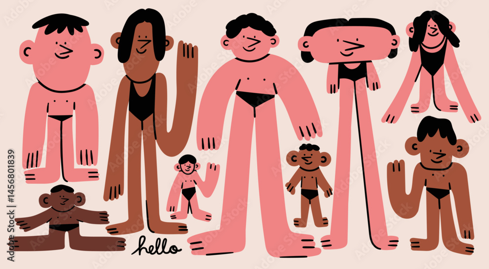 Various abstract People. Cute big, tall, small, short people. Different shapes of bodies, legs, heads. Cartoon style characters. Hand drawn trendy Vector illustration. Isolated design elements #1456801839