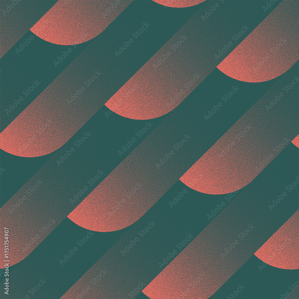 Vector abstract patterned seamless background with mod style dashes and angular shift in red and green colours. Half tone stipple grainy texture brings energetic and dynamic graphic design aesthetics #1751754907