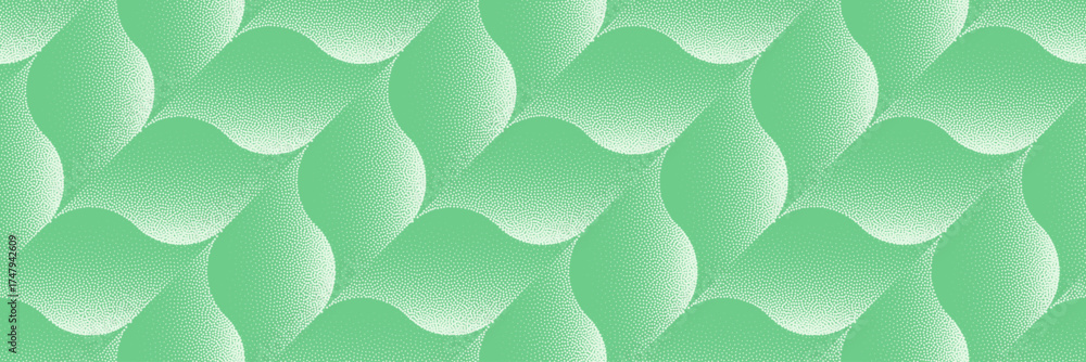 Vector abstract wide panoramic background with a modern halftone scales pattern in light green colour. Grainy texture creates a playful and organic flow for packaging, branding and creative backdrops #1747942609