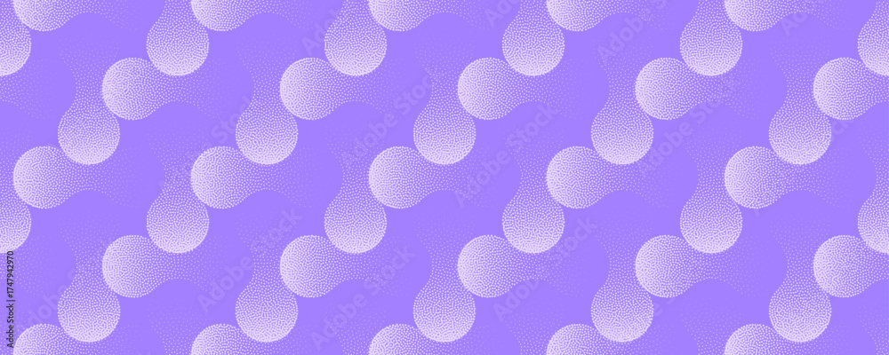 Vector abstract wide panoramic background with halftone metaball fluid shapes pattern in violet colour. Grainy texture enhances visual softness and movement for branding, posters and UI backdrops #1747942970