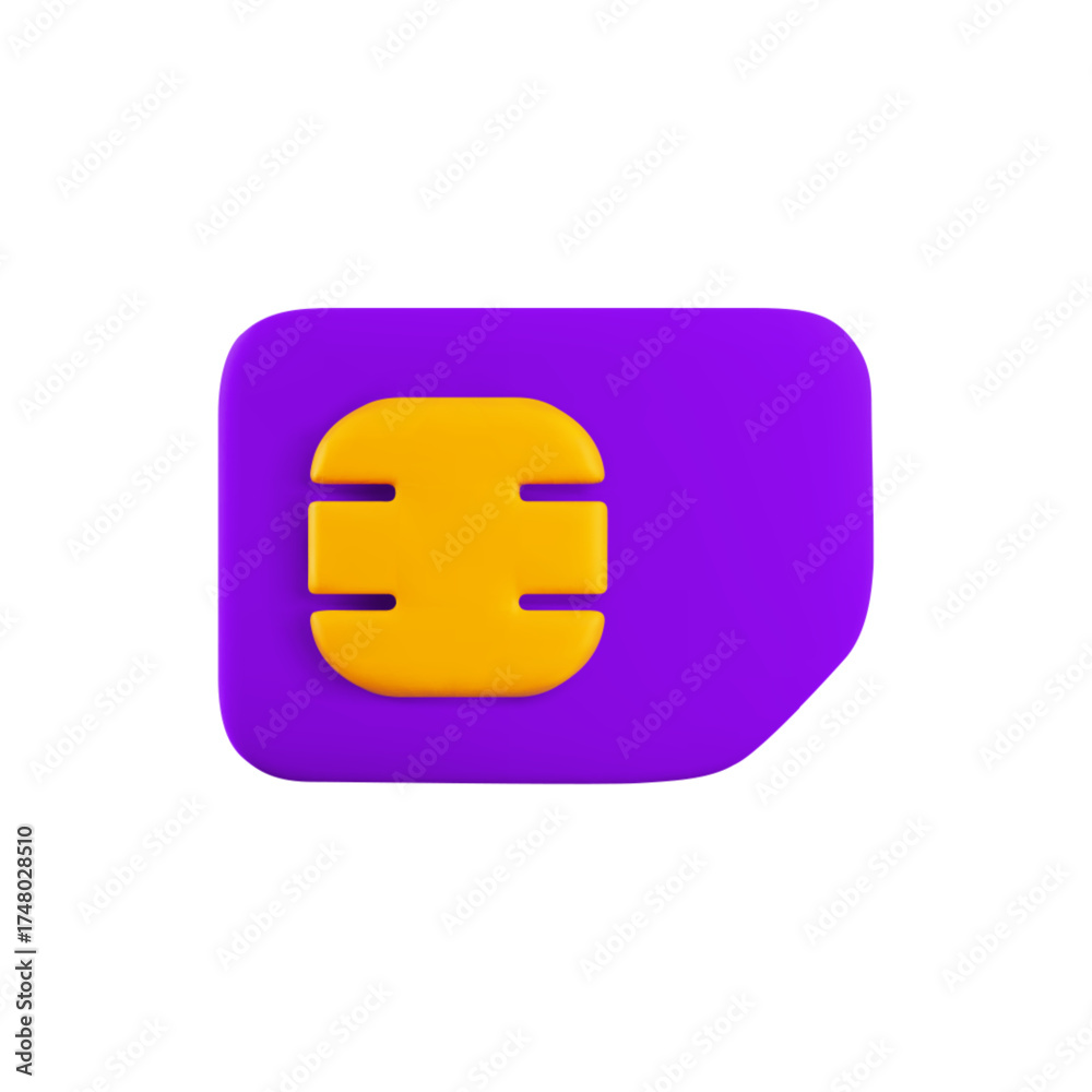 Vector cartoon 3d Sim card illustration. Minimal realistic 3d render violet mobile phone gsm SIM card with golden circuit chip. Communication technology illustration, gsm network eSIM, 4G, 5G concept. #1748028510