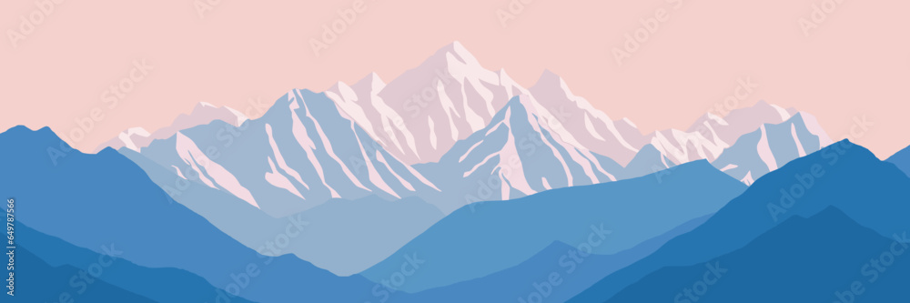 Vector drawing of mountain landscape, panoramic view, traveling in the mountains, climbing #649787566