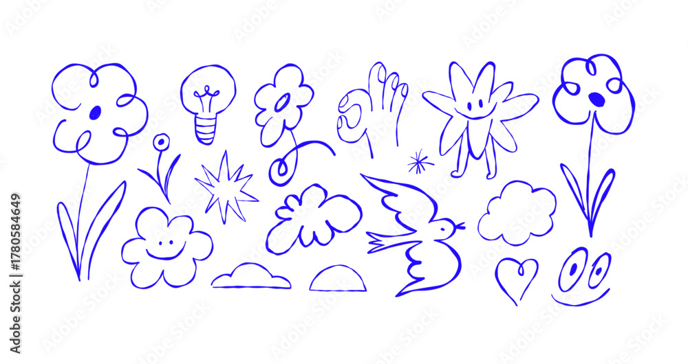 Vector hand drawn doodles, sketches, icons and illustrations, for presentations, banners, scrapbooking, arrows, clouds, stars #1780584649