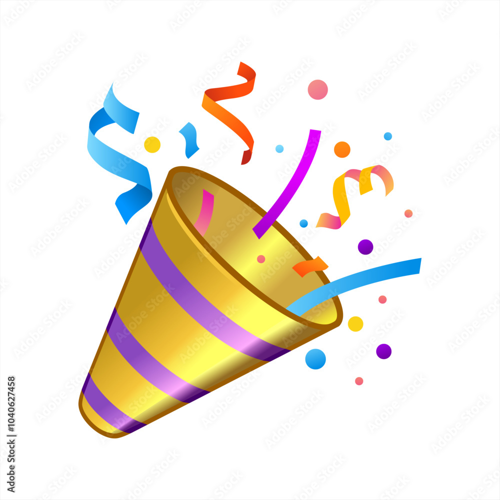 Vector icon party popper. Cartoon emoji of birthday confetti explosion. Simple minimal illustration isolated on white background, vector 10 eps. #1040627458