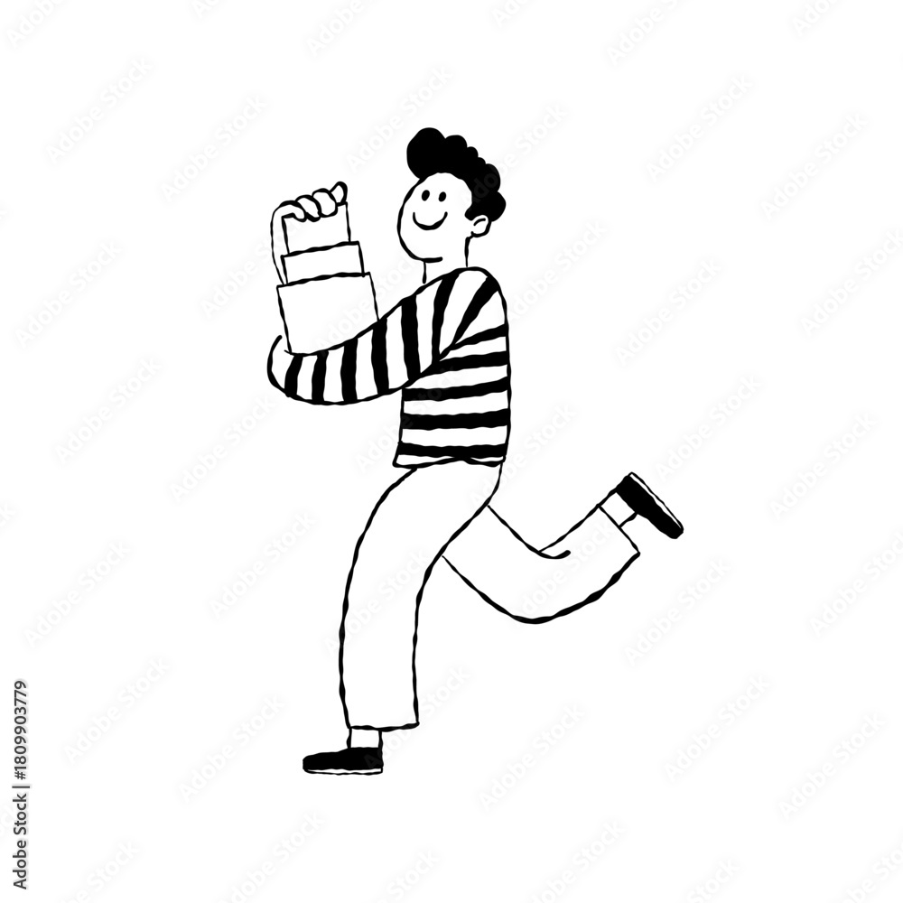 Vector illustration in simple hand drawn style, in trendy playful whimsical quirky style, friendly mascot, delivery concept #1809903779