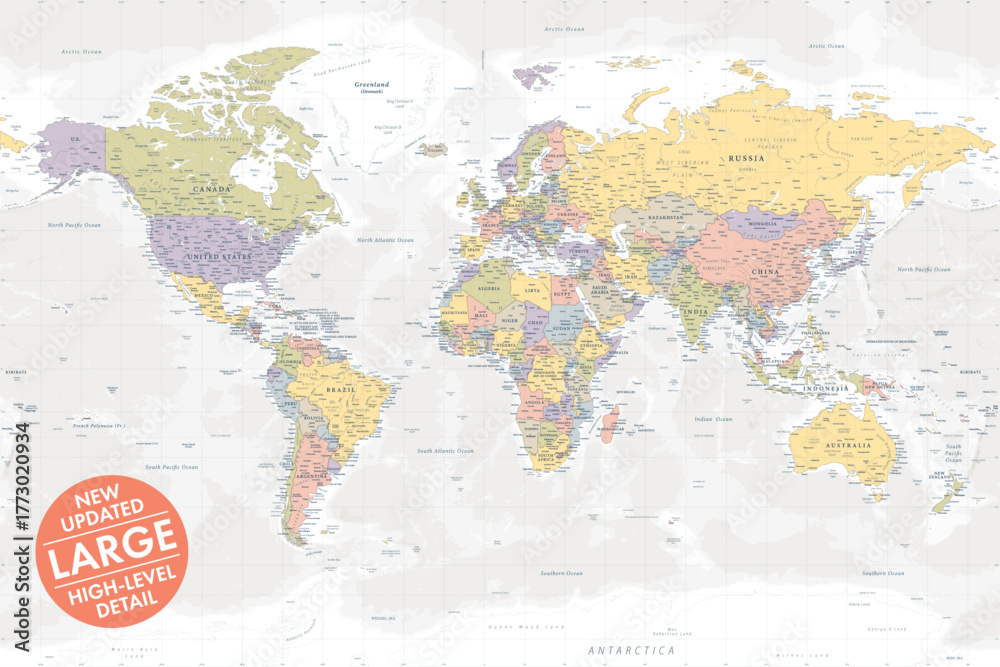Vector world map large detailed layered updated edition in soft faded color style #1773020934