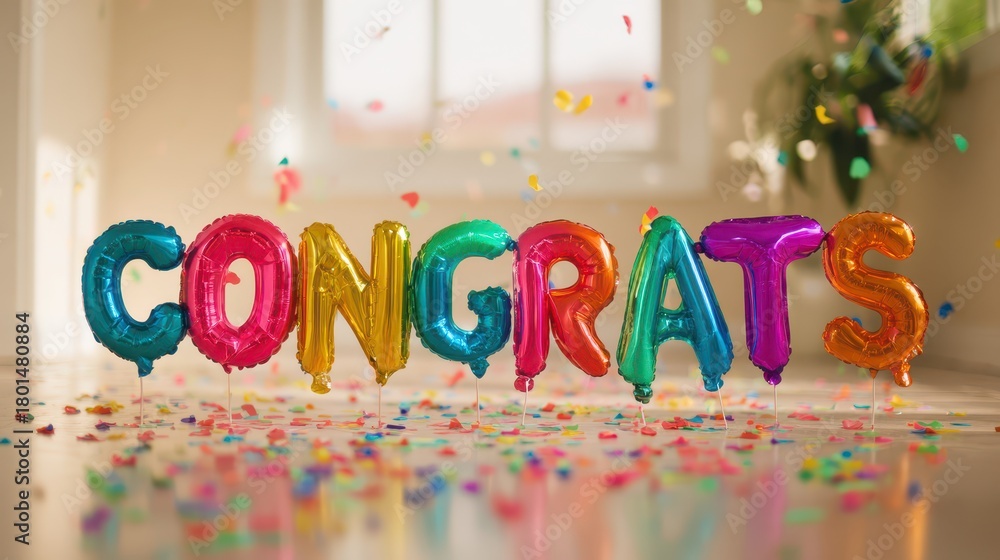 Vibrant balloon letters spelling congrats for a joyful party mood #1801480884