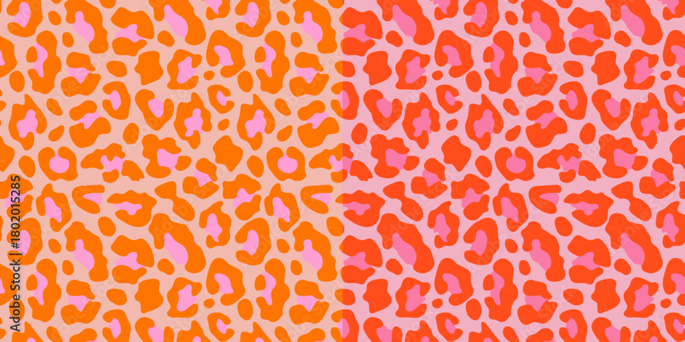 Vibrant seamless leopard pattern in warm orange and pink tones. Trendy abstract animal print for fashion, textile, branding and modern design. #1802015285