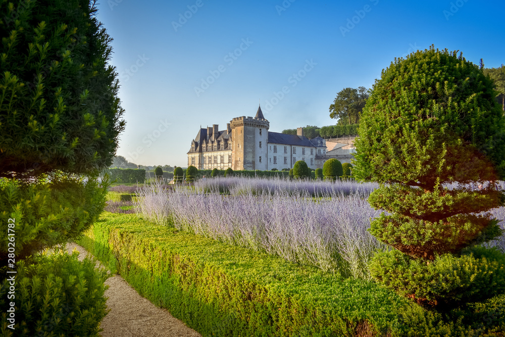 VILLANDRY CASTLE, FRANCE - JULY 07, 2017: The garden illuminated by 2,000 candles at dusk . Nights of a Thousand Lights at Villandry castle, France on July 07, 2017 #280261782
