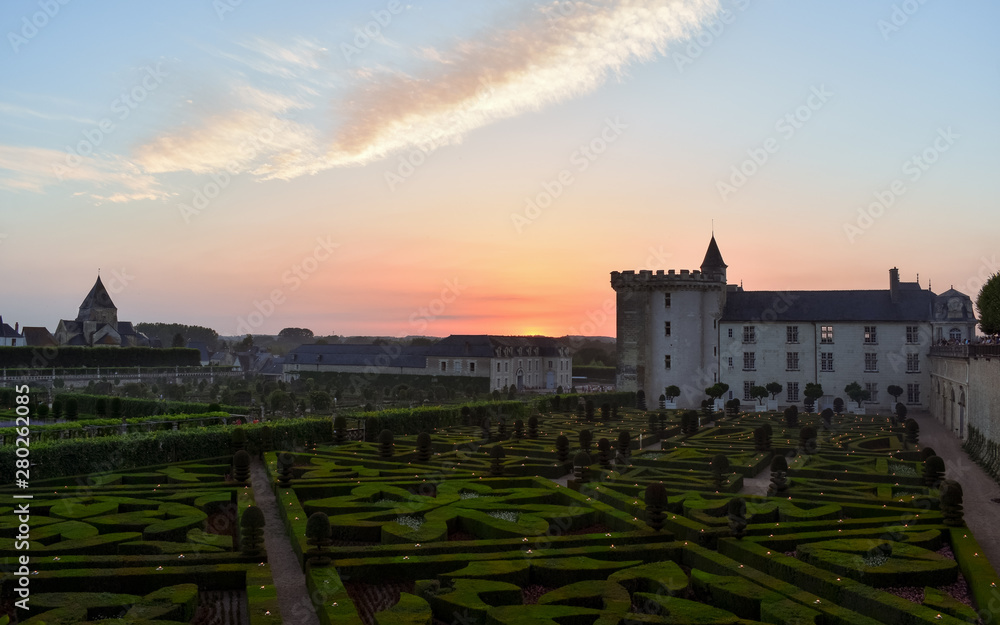 VILLANDRY CASTLE, FRANCE - JULY 07, 2017: The garden illuminated by 2,000 candles at dusk . Nights of a Thousand Lights at Villandry castle, France on July 07, 2017 #280262085