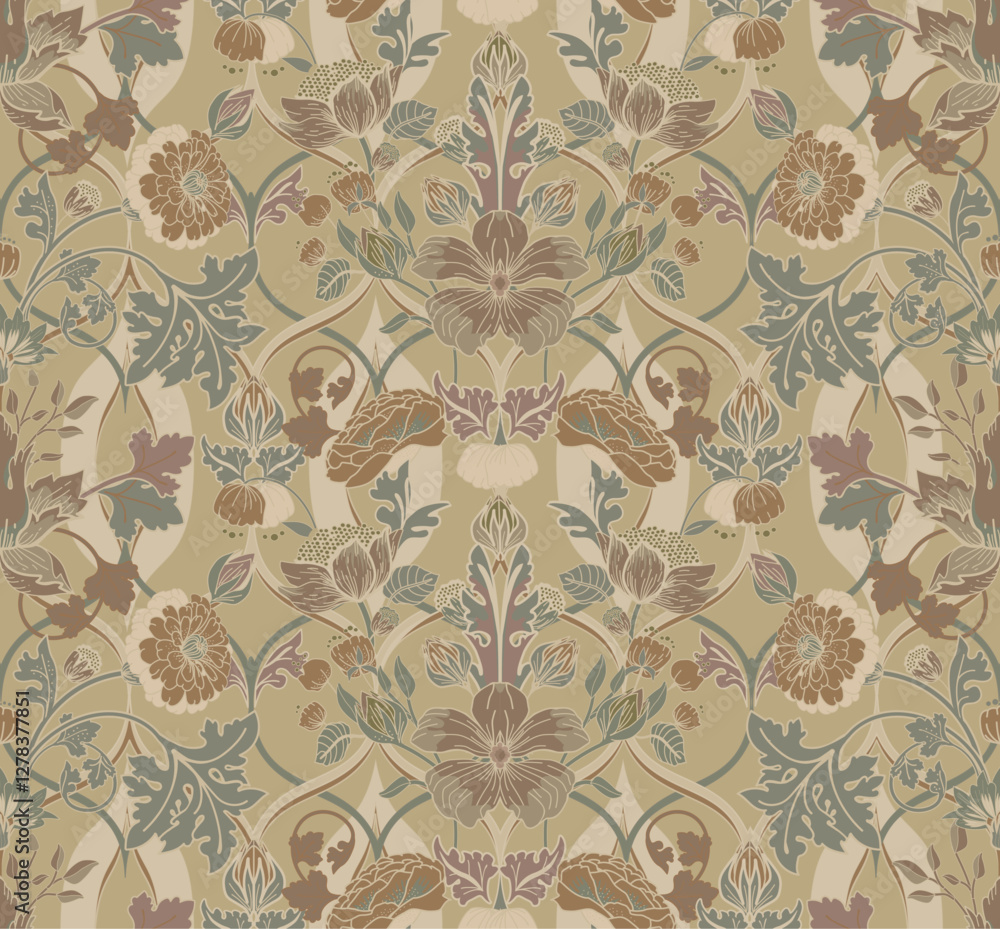 Vintage Floral Twisted Seamless Pattern for Fabric, Tapestry, Wallpaper, Packaging #1278377851