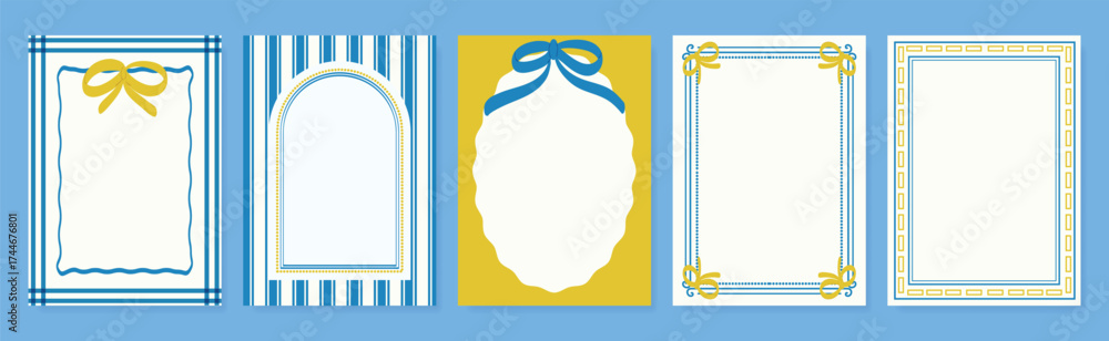 Vintage hand drawn frames vector set. Collection frame template in different shape with ribbon decorative. Design for card, poster, cover, background. #1744676801