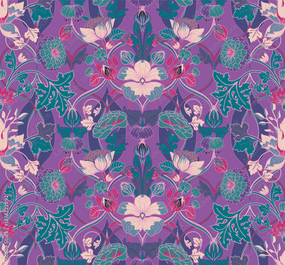 Vintage seamless floral pattern in damask style. For textiles, wallpaper, packaging. #1374222892