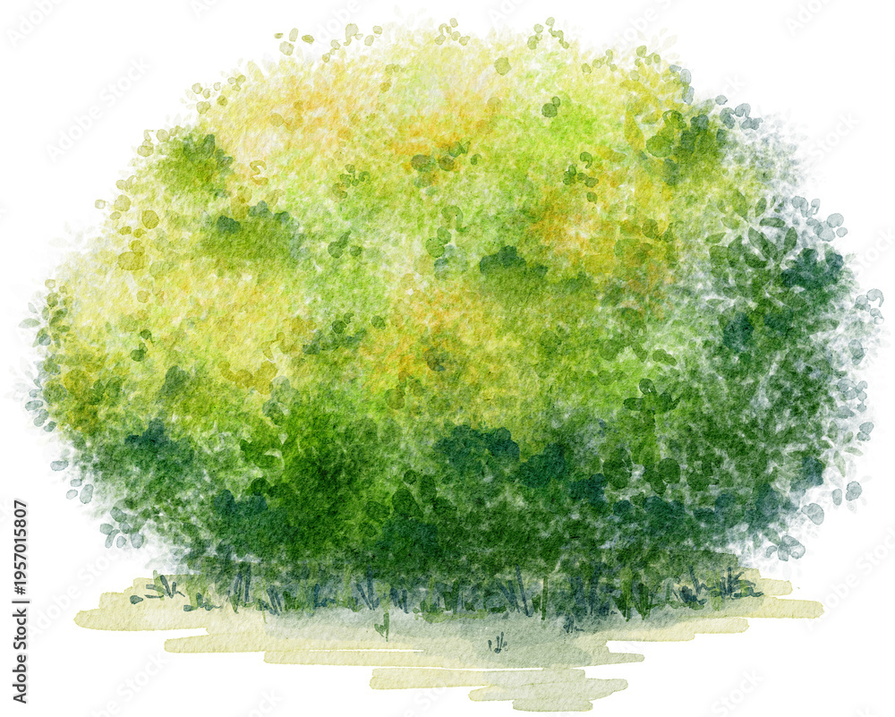 Watercolor Green Round Bush on the Grass Element #1957015807