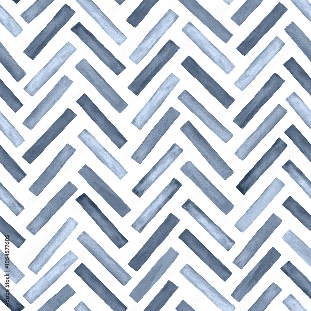 Watercolor painted coastal blue chevron herringbone timeless classic seamless pattern background #1954577605
