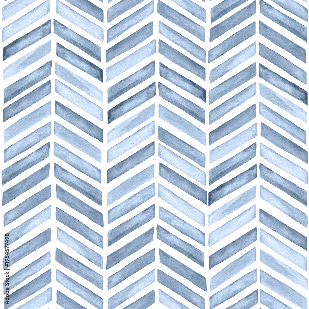Watercolor painted indigo blue chevron herringbone timeless classic seamless pattern background #1954577498