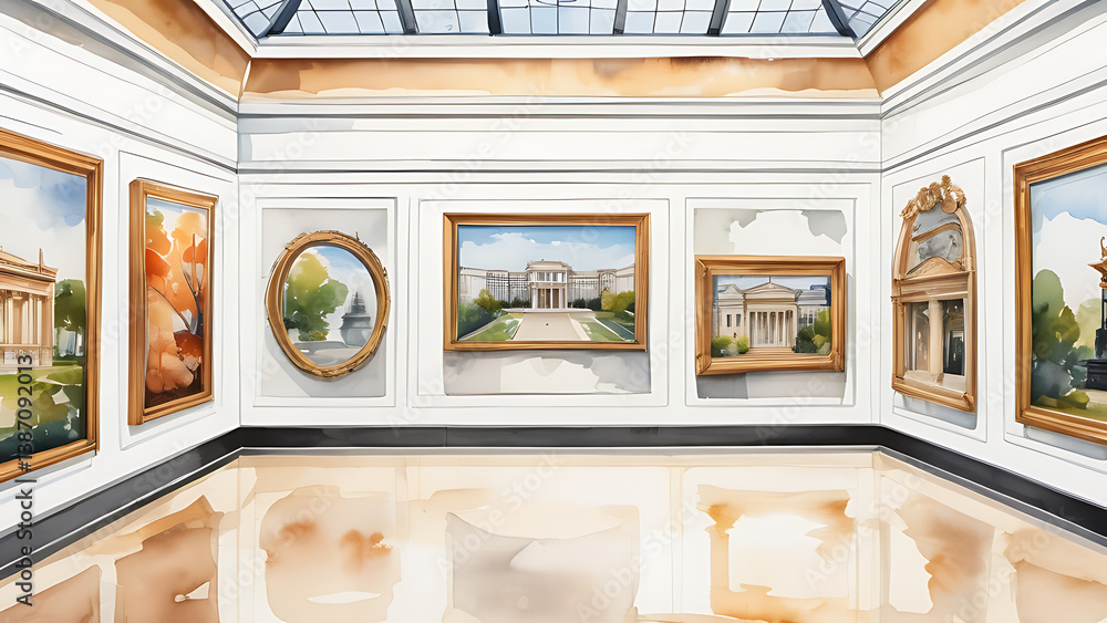 Watercolor Painting Exhibition Featuring Framed Art in Gallery Space #1387092013