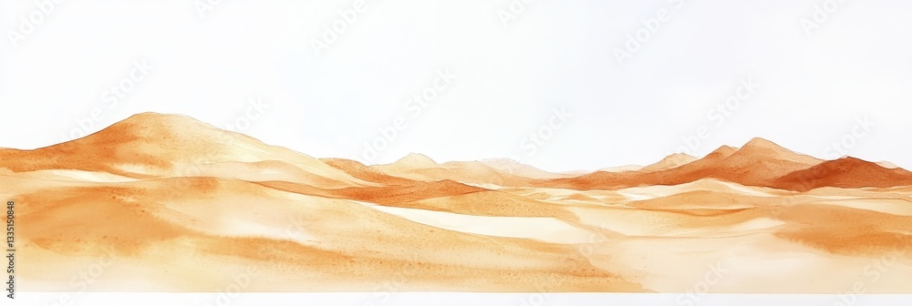 Watercolor Sands of Rub' al Khali - Serene watercolor landscape depicting the vast, undulating dunes of the Empty Quarter. Evokes feelings of peace, solitude, adventure, vastness #1335150848