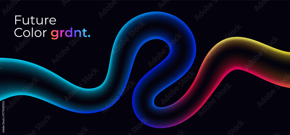 Wavy shape with Colorful gradient on black background. Vector creative illustration. #1779269333