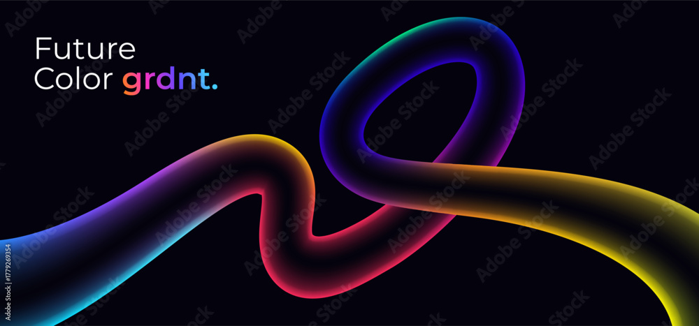 Wavy shape with Colorful gradient on black background. Vector creative illustration. #1779269354