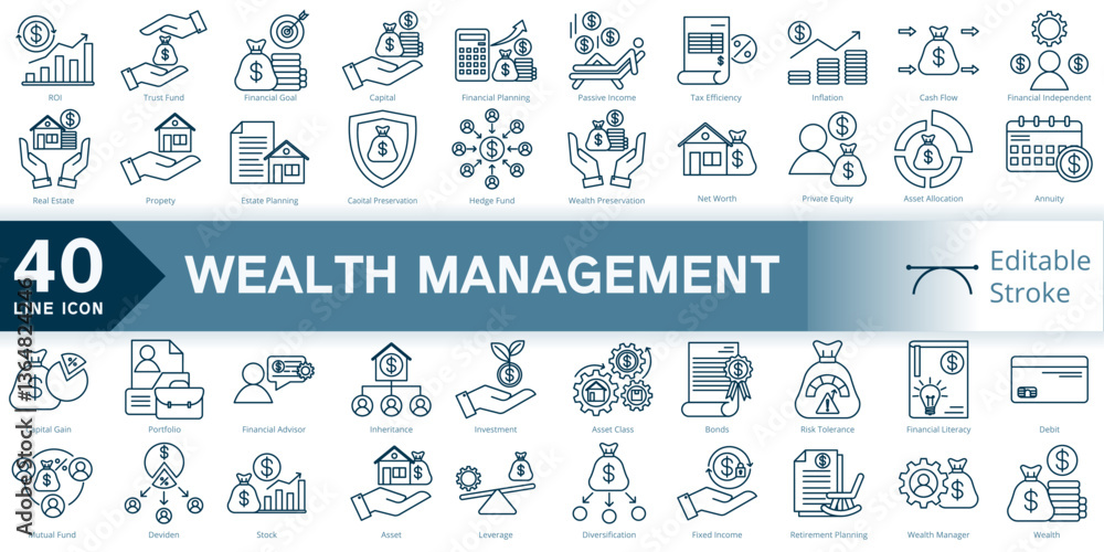 wealth management icon set, simple line element wealth management with editable stroke, wealth management simple icon, wealth strategy icon line style vector image #1364824246