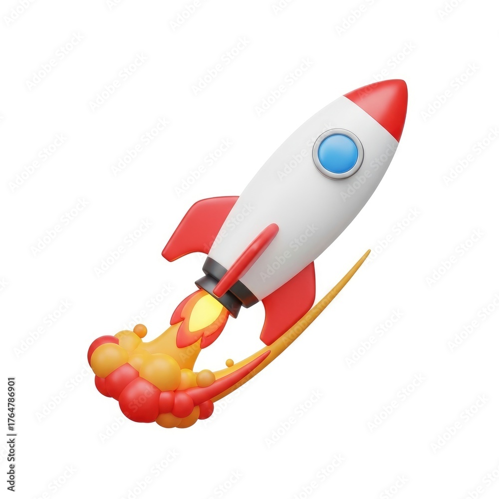 White and red cartoon rocket ship blasting off with orange and yellow flames icon 2025-2026 transparent isolated on white background png 4k full hd download #1764786901