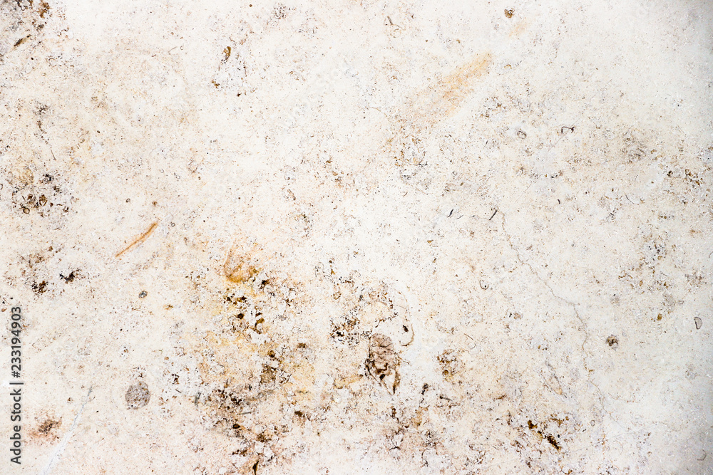 White beige marble stone wall house facade with natural imperfections and holes as simple surface texture background. #233194903