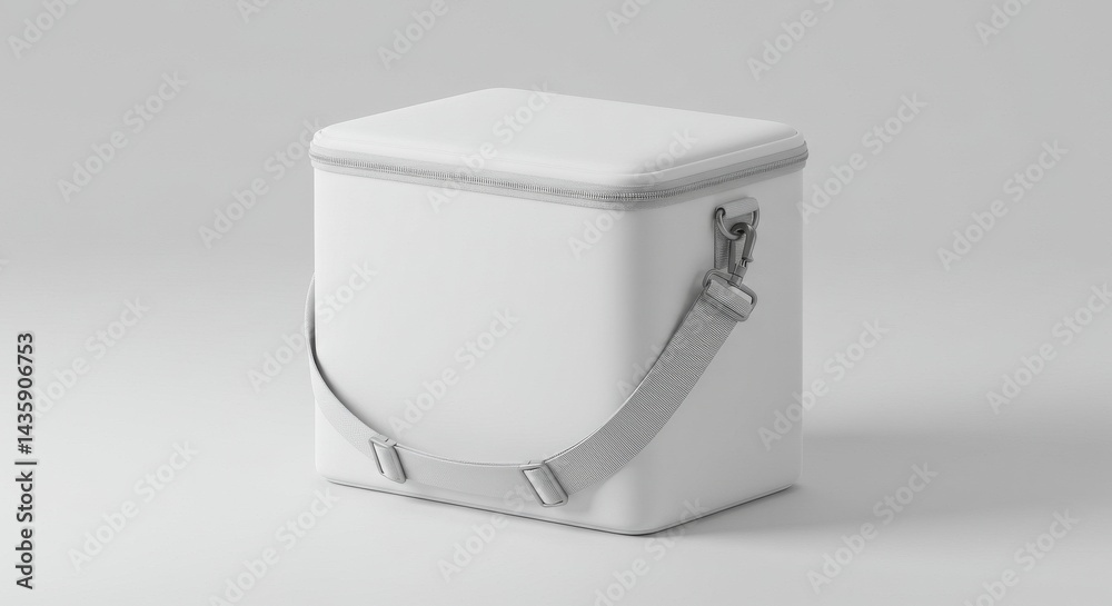 White Insulated Lunch Bag Mockup - Clean, minimalist mockup of a white insulated lunch bag with a shoulder strap, ideal for branding and design presentations #1435906753