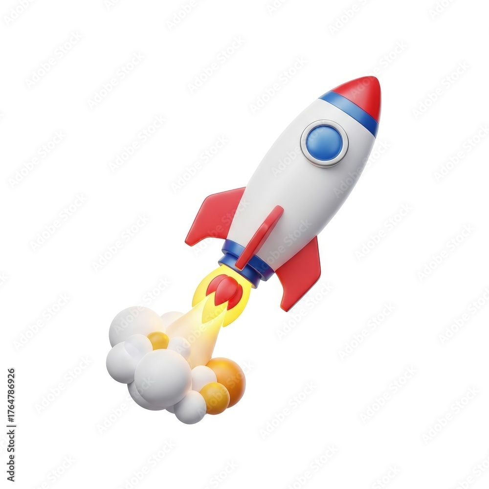 White rocket with red fins and blue accents blasting off with orange and white smoke icon 2025-2026 transparent isolated on white background png 4k full hd download #1764786926