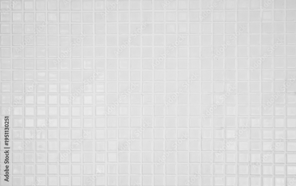 White tile brick wall background bathroom texture. Ceramic brick wall and floor tiles mosaic background in bathroom and kitchen clean. Design pattern geometric with grid wallpaper decoration. #1951130251