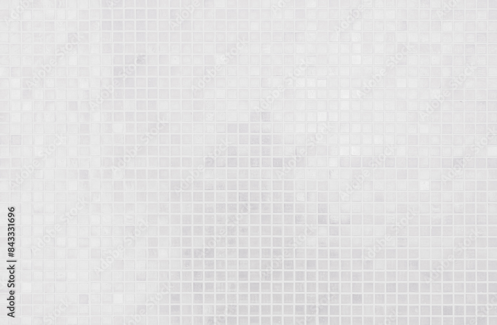 White tile wall chequered background bathroom texture. Ceramic brick wall and floor tiles mosaic background in bathroom and kitchen clean. Design pattern geometric with grid wallpaper floor elements. #843331696