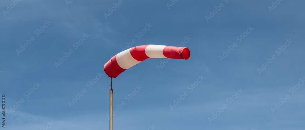 Windsock Against Blue Sky. Basic Indicator of Wind Speed and Direction. #1773034383