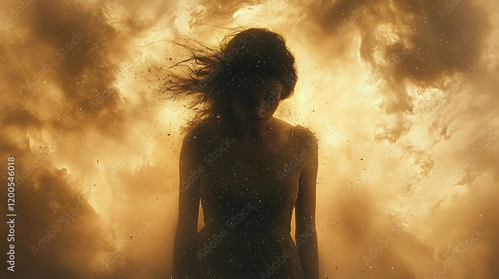 Woman, stormy clouds, sorrow, ethereal, art, website banner #1200546018