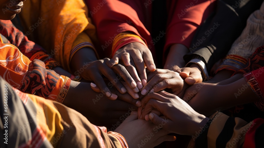 women's hands holding one arm, sign of support between women feminism strong matrical strength #654656386