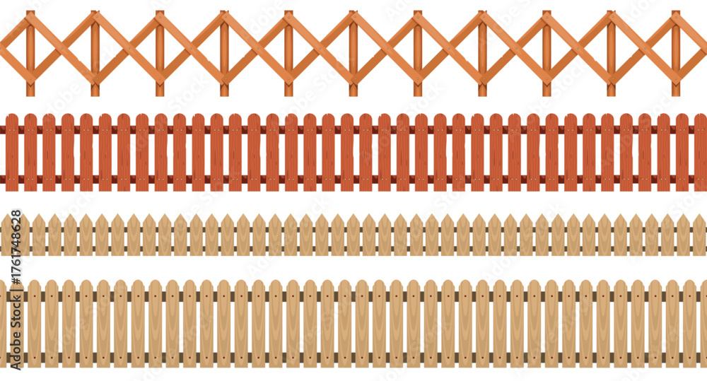 Wooden fence pattern. Seamless print of rural plank boundary wall, cartoon gate barrier, wooden fence exterior, brown timber gate wall. Vector texture #1761748628