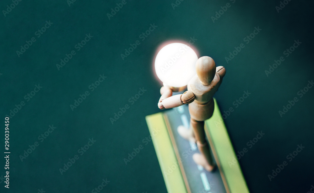 Wooden puppet with light bulb #290039450