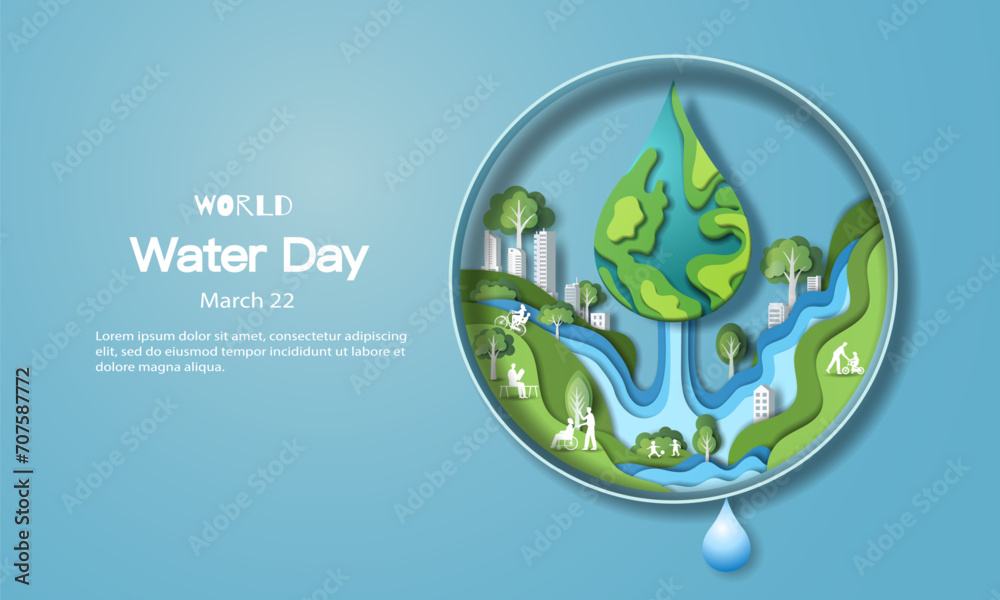World Water Day, the city is nourished by the water. Paper illustration and 3d paper. #707587772