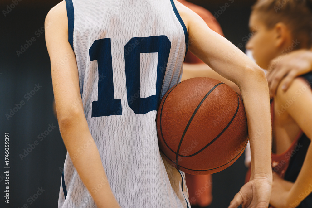 Youth Basketball Player Holding Ball. Junior Basketball Training and Team Practice in Indoor Gym #1745059391