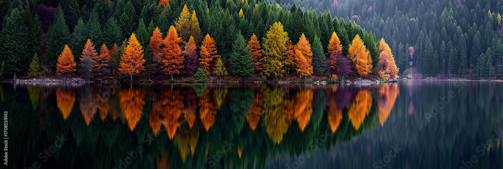 A beautiful autumn scene with trees and a lake #1708559143