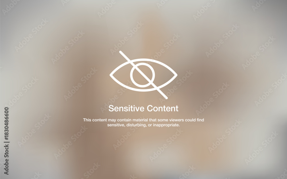 A blurred background featuring a sensitive content warning icon and message, commonly used for marking restricted or mature material online. Sensitive content warning. Digital content filter. #1830486600