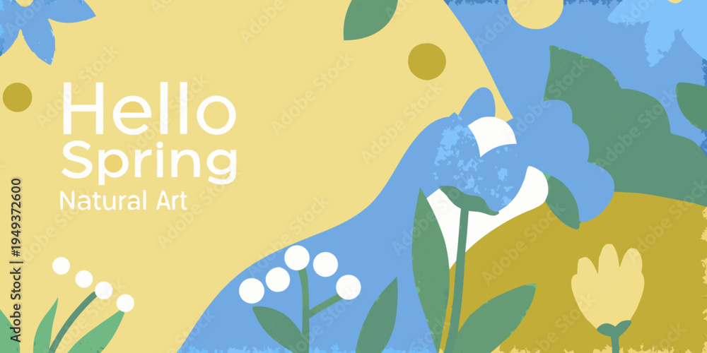 A bright cheerful illustration welcoming the arrival of spring with floral motifs #1949372600