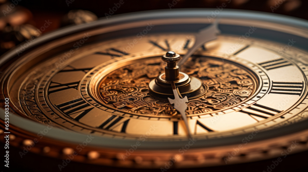 A brown clock its face filled with Roman numerals #653908300