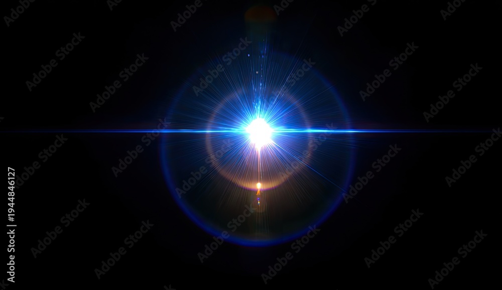 A centered, bright blue and orange lens flare against a dark background #1944846127
