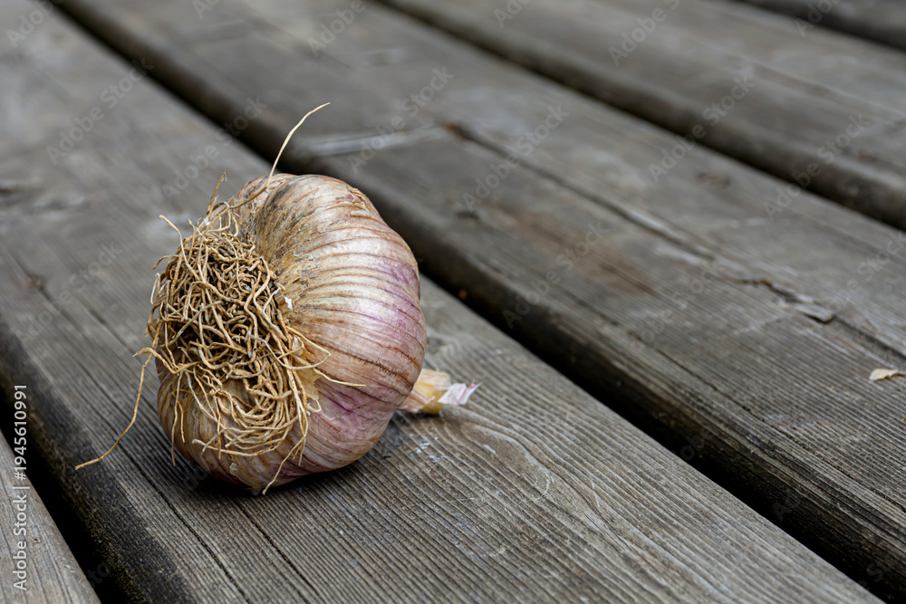 A close up image of the roots on a single bulb of organically grown garlic. #1945610991