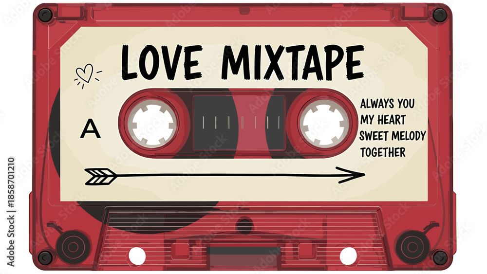 A close-up of a red cassette tape with the words Love Mixtape on it #1858701210