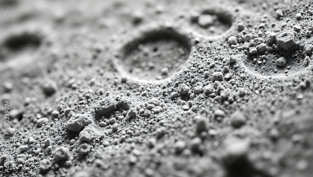 A close-up view of a textured surface with circular indentations and small craters #1970239874