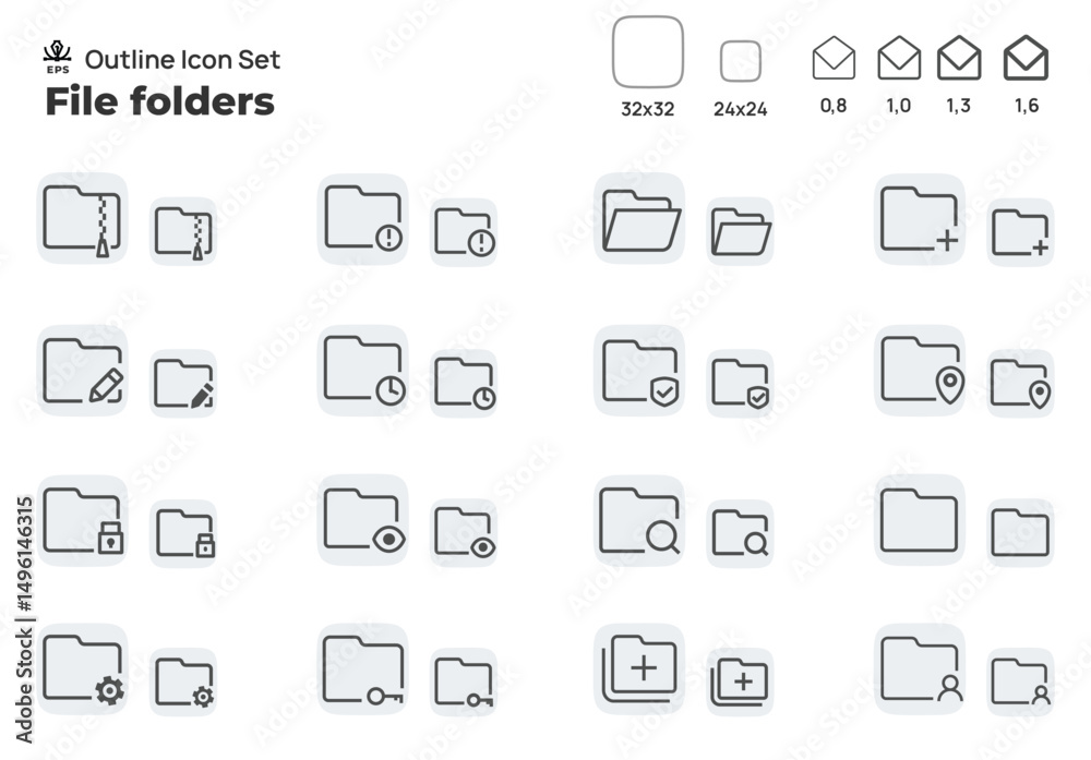 A collection of folders with files and personal user data. Concept editable stroke outline icons set isolated on white background flat vector illustration. Pixel perfect #1496146315