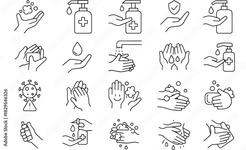a collection of hygiene icons displaying hand washing sanitizer germs and cleanliness perfect for health related designs on transparent background silhouette high quality professional detailed modern #1829546326