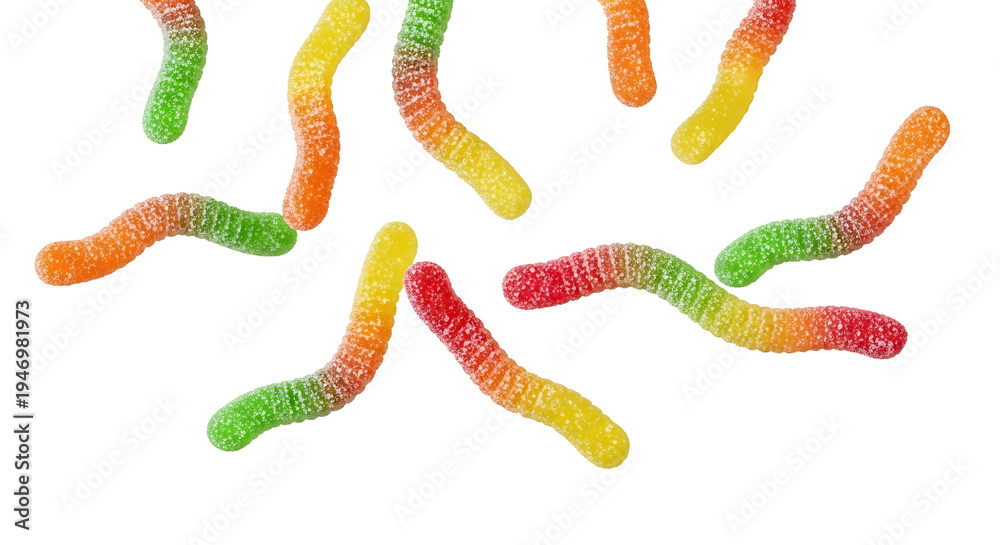 A colorful assortment of gummy worms on transparent background #1946981973